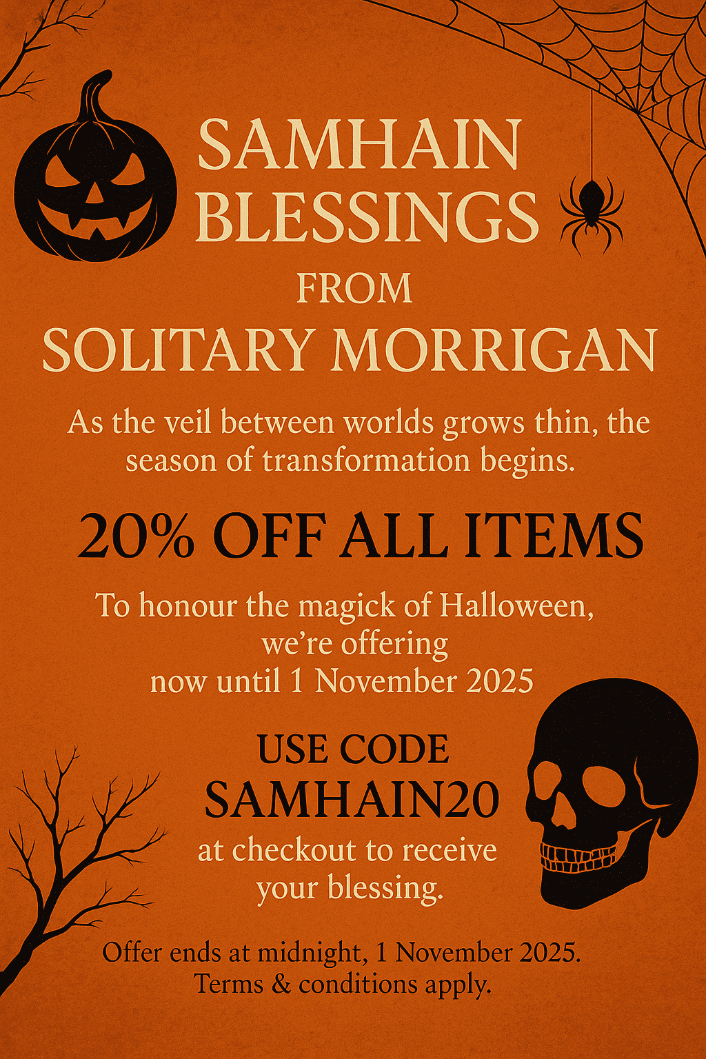 Use code SAMHAIN20 at checkout to receive your blessing.